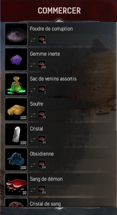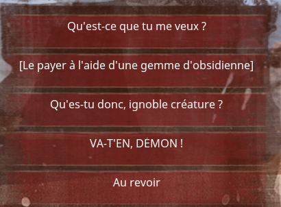 Il s'agit un démon non agressif qui échange des ressources contre du sang.